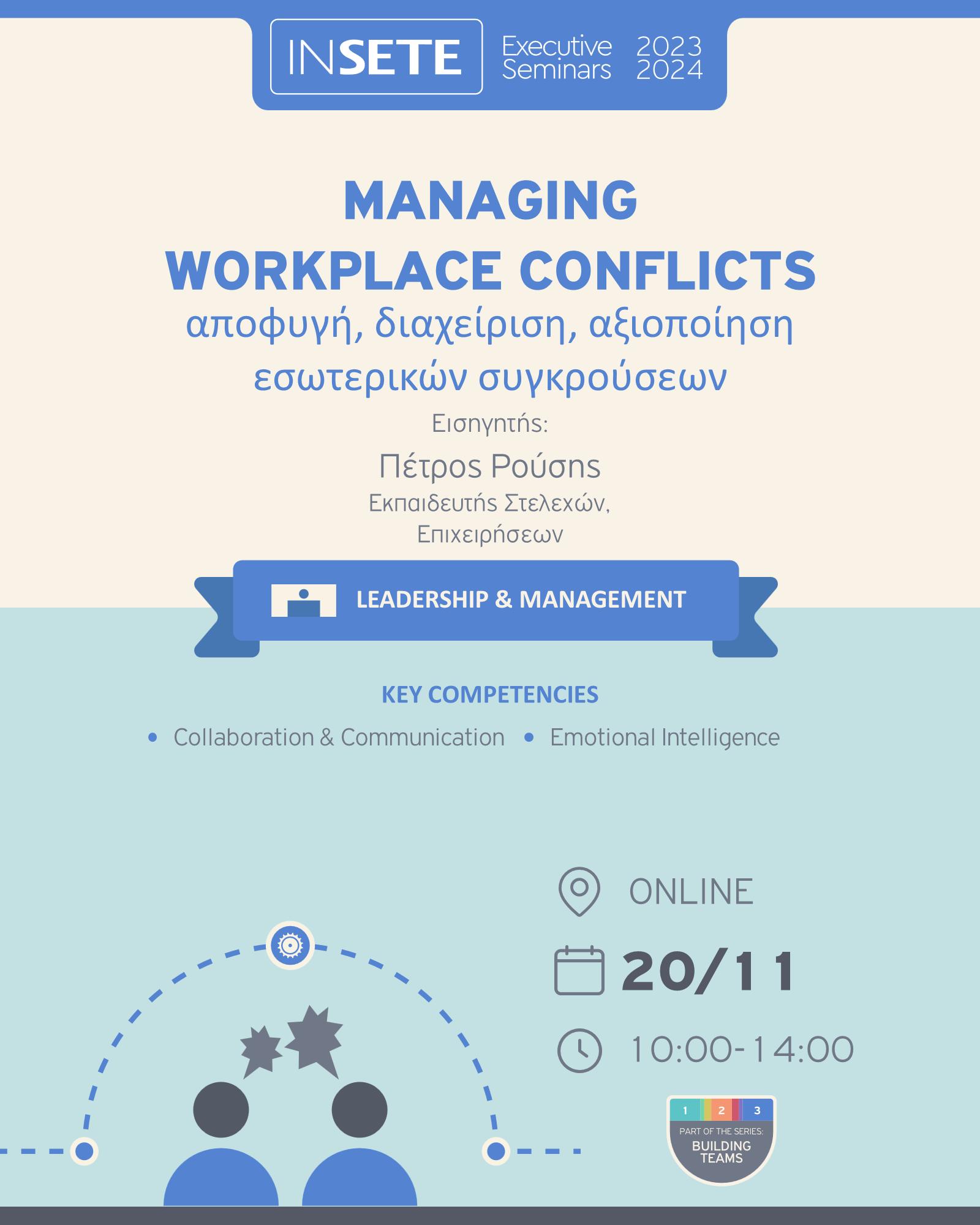 BUILDING TEAMS | MANAGING WORKPLACE CONFLICTS - αποφυγή, διαχείριση, αξιοποίηση εσωτερικών συγκρούσεων