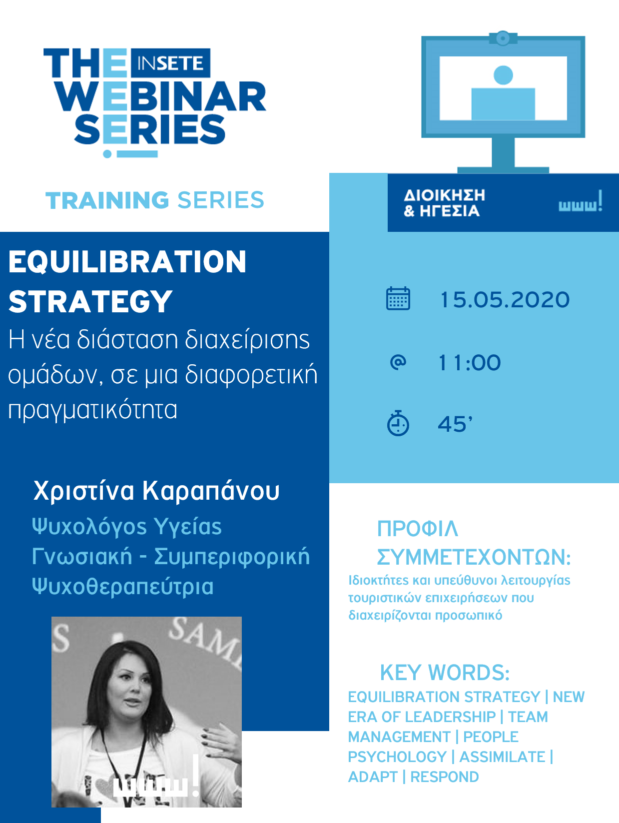 Οι συμμετέχοντες του Webinar θα έχουν την ευκαιρία να κατανοήσουν τις ψυχολογικές στρατηγικές προσαρμοστικότητας των ομάδων, όταν συμβαίνουν συγκλονιστικές αλλαγές στην ανθρωπότητα, όπως αυτή της πανδημίας του κορωνοϊού.