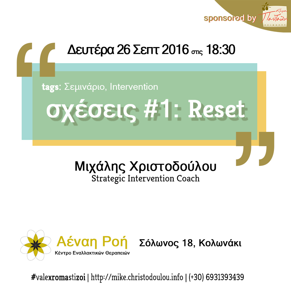 Ο Μιχάλης Χριστοδούλου είναι Strategic Intervention Life Coach. Πιστεύει στον άνθρωπο και στις δυνατότητες του. Πιστεύει στην εξέλιξη και ότι αυτή δεν σταματάει - ότι σταματά να εξελίσσεται παύει να υπάρχει, ότι δεν ρέει ακινητοποιείται.